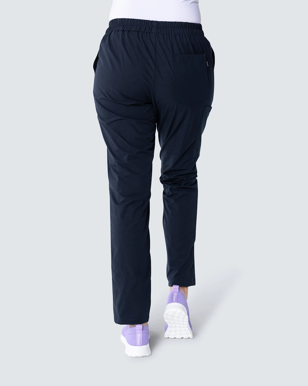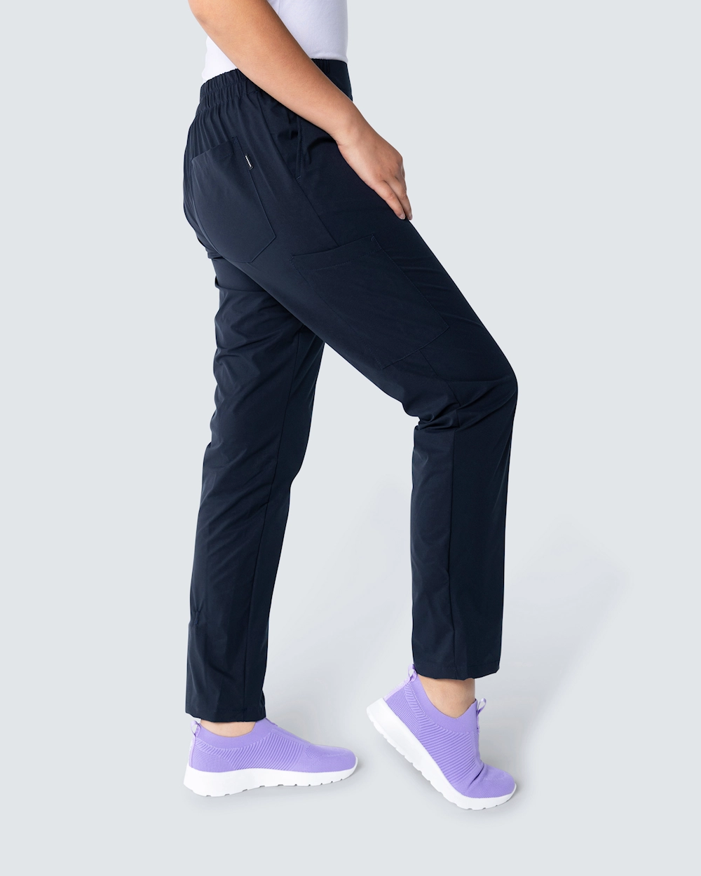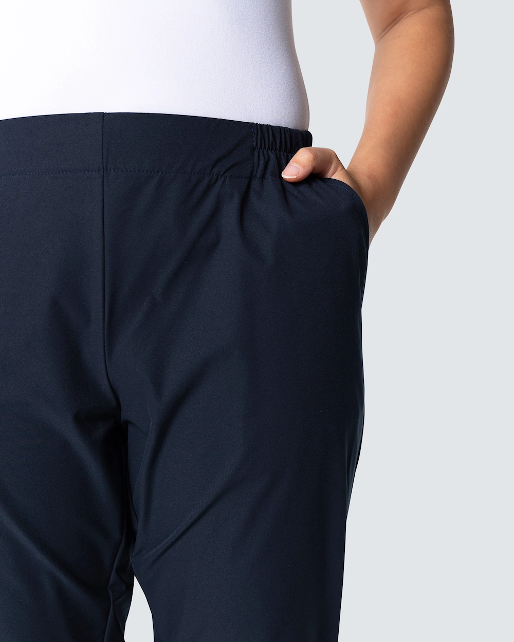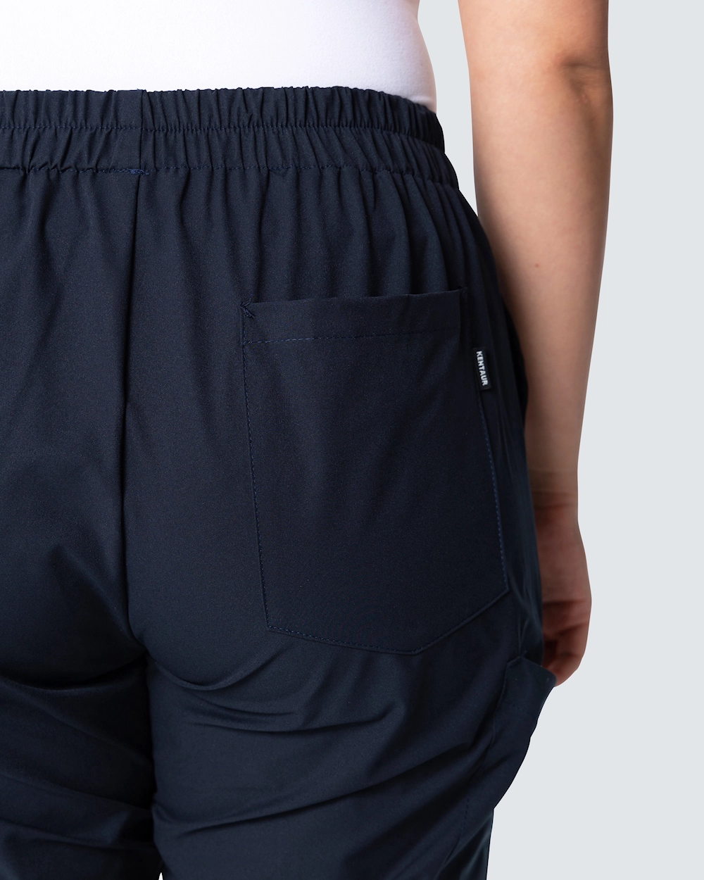 Unisex-arbejdsbukser med masser af stræk og behagelig elastisk linning. Bukserne har to sidelommer, en baglomme og en benlomme med trykknap for nem opbevaring af forskellige redskaber og udstyr. Arbejdsbuksernes længde kan tilpasses ved hjælp af elastik og trykknapper for enden af benene. Fremstillet i stretch polyester med god åndbarhed for optimal komfort på de lange arbejdsdage.