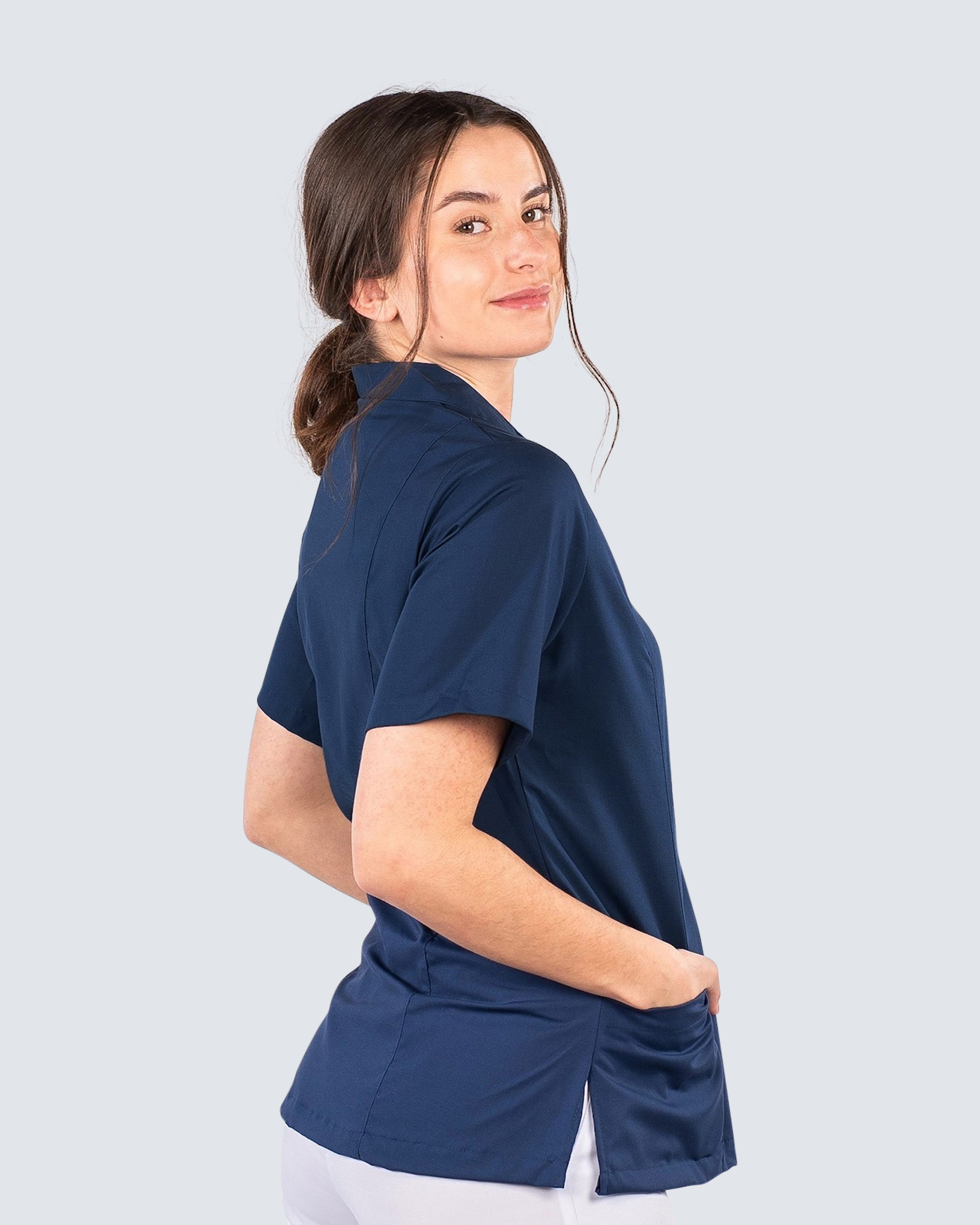 Stilfuld arbejdsjakke med lynlås foran. Jakken har en krave og er let skræddersyet, hvilket gør den til en skjortelignende model. Brystlomme og to rummelige hoftelommer giver masser af plads til alle arbejdsredskaber. Med slidser i siderne får en god bevægelsesfrihed.