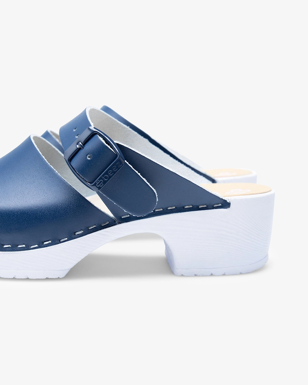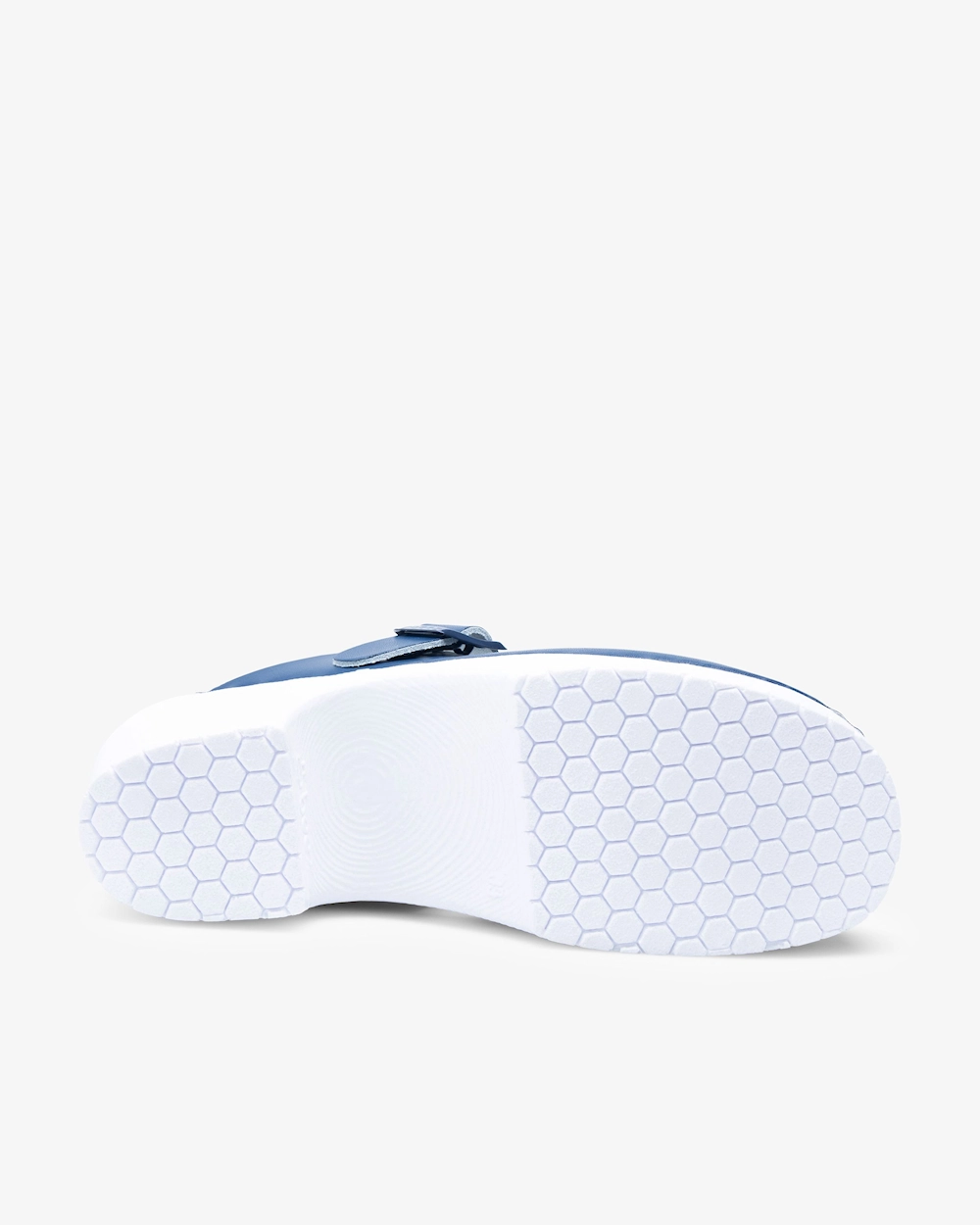 Beez Belle er en trendy arbejdssko med et stilrent design. Inspireret af en klassisk træsko med moderne detaljer såsom justerbart spænde og luftige snit. Skoen har en stabil sål i PU-gummi, der giver et godt greb, med en indsats af træfiner, der giver stabil støtte under lange vagter. Med en PU-overdel kan du let rengøre og tørre skoen af - optimalt for dig, der arbejder i sundhedsvæsenet.
