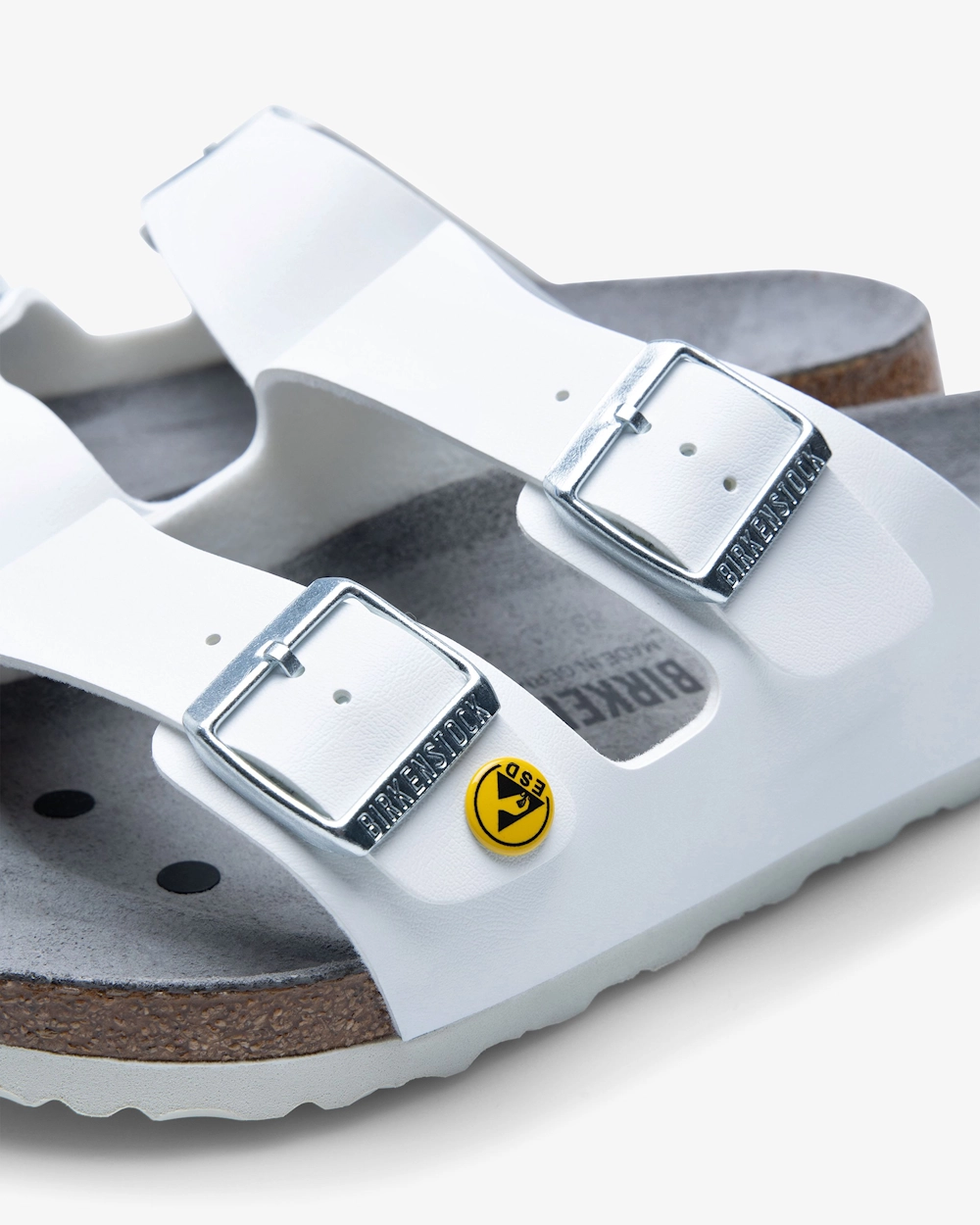 Birkenstock Arizona ESD forhindrer elektriske udladninger og kan med fordel anvendes i elektrotekniske erhverv. Med sin specialudviklede ESD fodseng og sål udsendes der kontinuerlige mikroudladninger, hvilket betyder beskyttelse af både individet og elektriske komponenter.