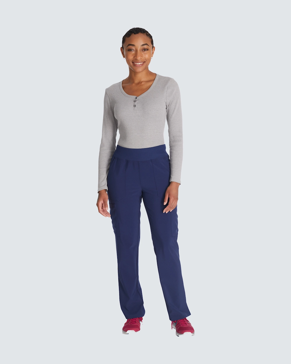Dickies Pull-on arbejdsbukser med bred elastisk linning giver en behagelig og moderne stil til den aktive sundhedsperson.