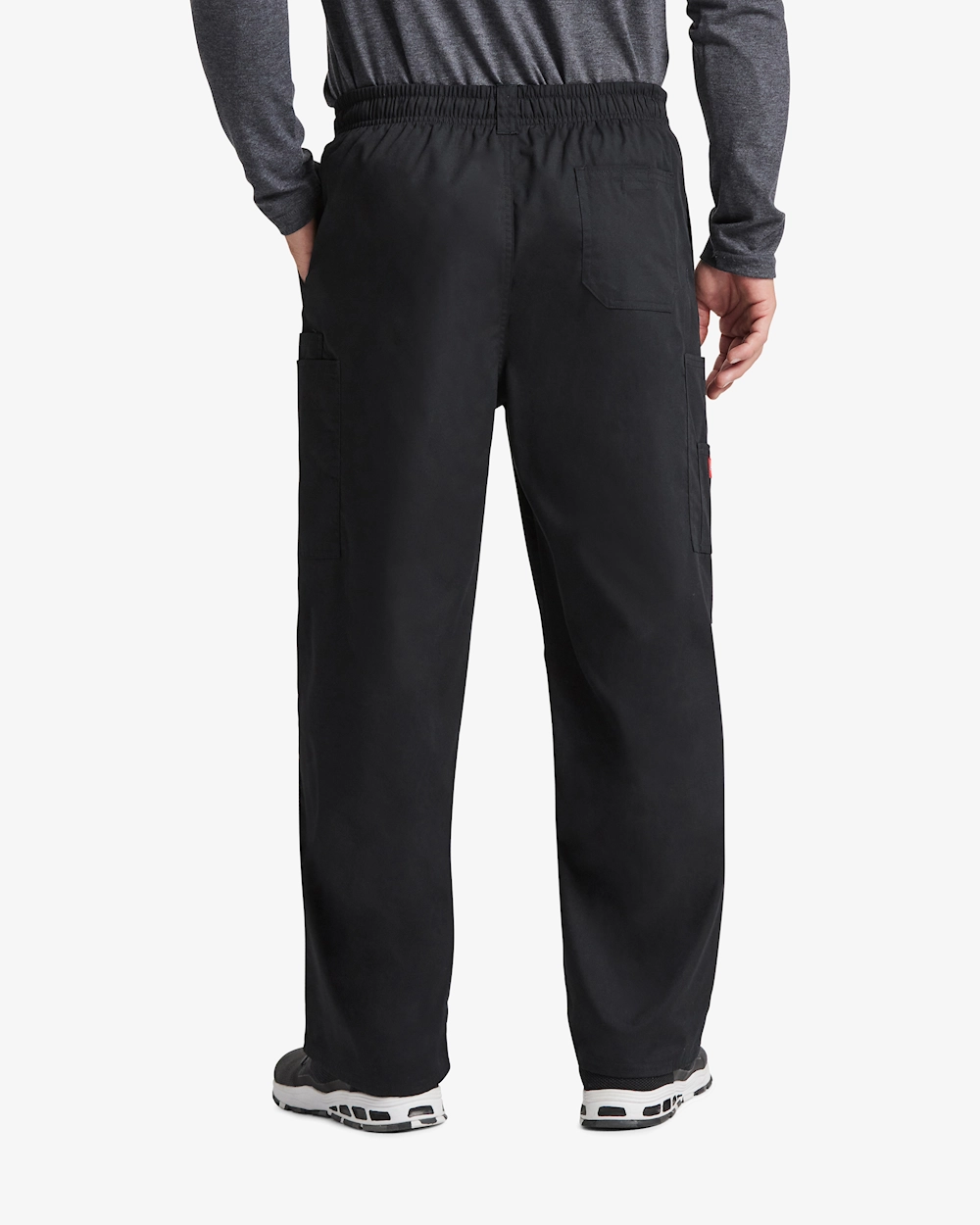 Herremodel med lynlås og elastik i taljen for en fleksibel pasform under lange vagter. Justerbar løbegang, logobånd, knaplukning og D-ring kombinerer funktion med personlig stil. Superblød børstet bomuld/polyester gør bukserne behagelige hele dagen. Flere lommer - skrå foran, cargo, bagpå med velcro - giver praktisk opbevaring på arbejdet. Indvendig benlængde 80 cm.