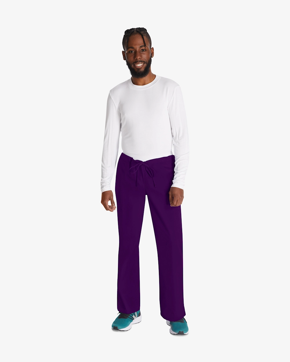 Unisex-arbejdsbukser med naturlig talje og justerbar snøre, som giver en personlig pasform under lange vagter. Linningen med logo giver et moderne look, og baglommen med elastisk inderlomme giver sikker opbevaring af vigtigt tilbehør. Bukserne har en indvendig benlængde på 79 cm og er fremstillet af børstet, superblød bomuld/polyester for optimal komfort og bevægelsesfrihed for dig i et sundhedsmiljø.
