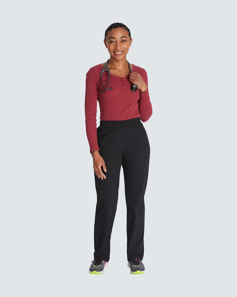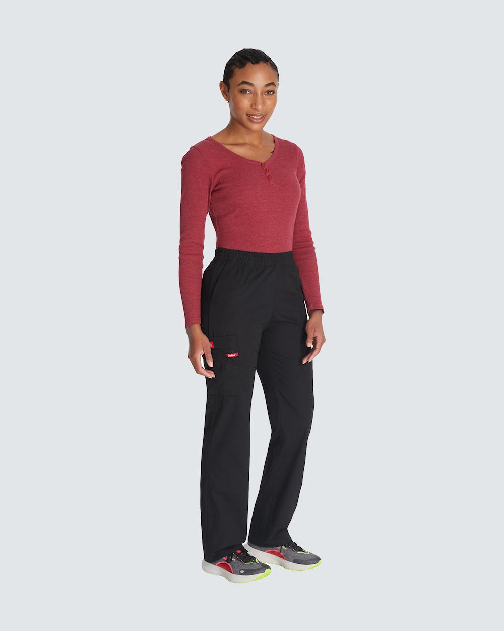 En moderne arbejdsbuks med tapered pasform og normal talje. Pull-on-stil med elastisk talje for komfort og fleksibilitet. Bukserne har praktiske detaljer som en nøglestrop og en elastisk skjult inderlomme.