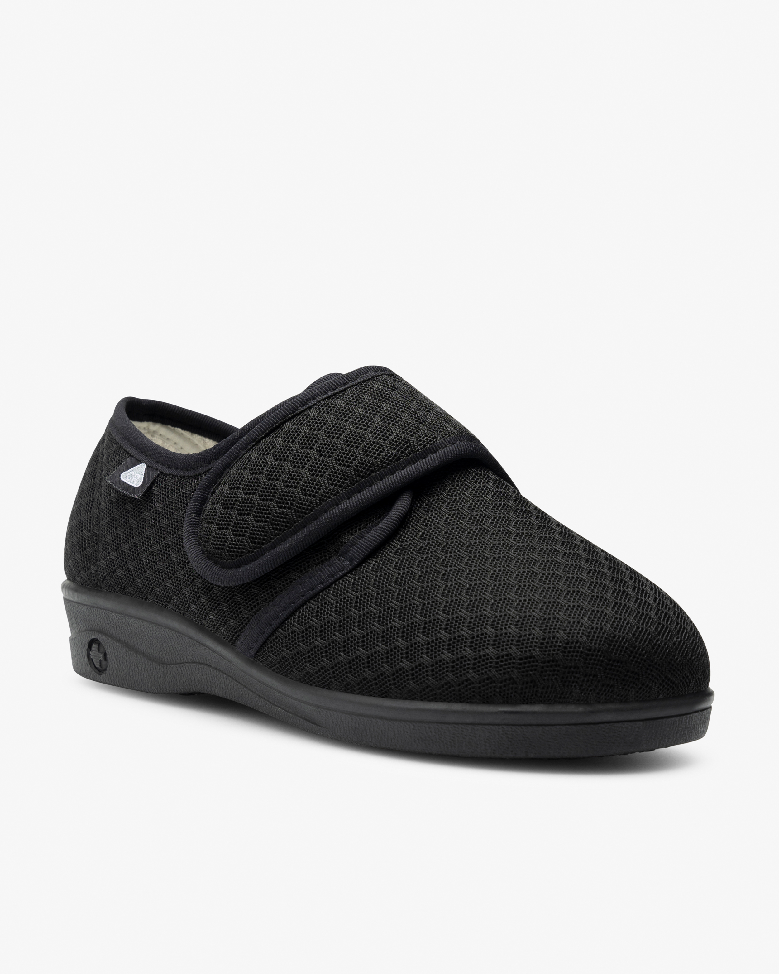 En blød, elastisk og vandafvisende specialsko til følsomme fødder. Skoen former sig efter foden og giver optimal komfort. Velcrolukningen giver en justerbar pasform, og bambusforingen har temperaturregulerende egenskaber. Skoen kan vaskes og er udstyret med en skridsikker ydersål, der griber godt fat i underlaget.