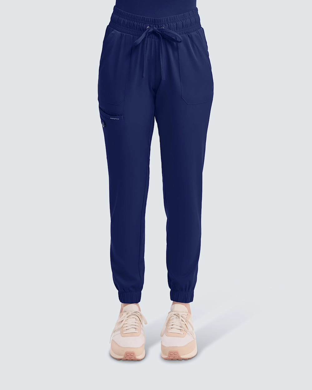 Højtaljede joggingbukser til kvinder med en afslappet pasform giver optimal bevægelsesfrihed på krævende arbejdsdage. Det funktionelle 4-vejs stretchstof sammen med elastiske manchetter og snøre i taljen sikrer en behagelig pasform. Fem praktiske lommer foran, bagpå og på benene giver smart opbevaring. Udstyret med en holder til f.eks. briller.