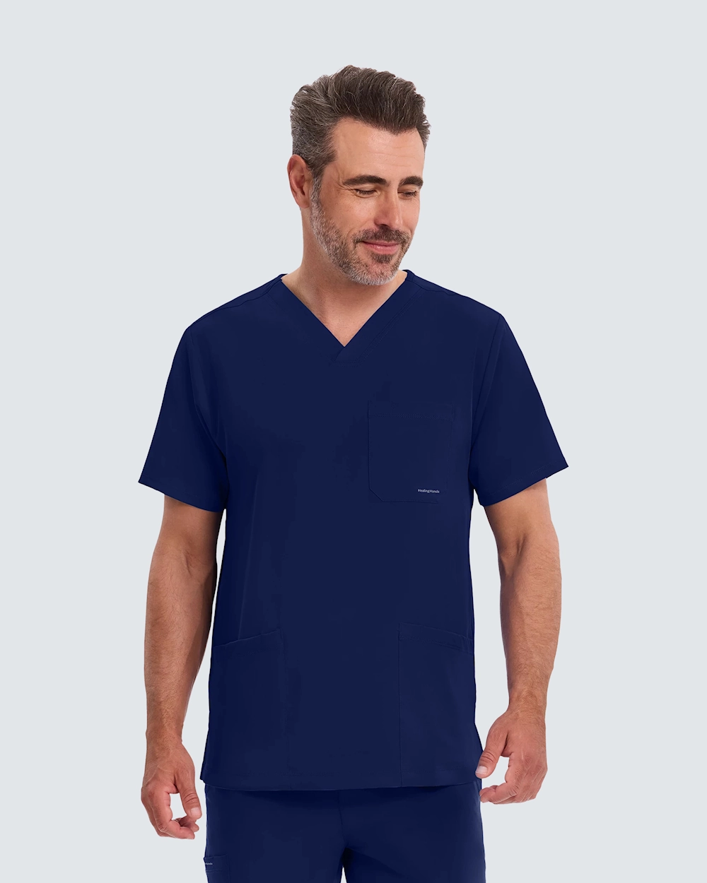 Mathew-toppen fra Healing Hands er skabt til mænd, der prioriterer komfort og funktion. Den har en moderne pasform og er fremstillet i et blødt stof med naturligt fugttransporterende egenskaber, der holder dig godt tilpas under lange arbejdsdage.