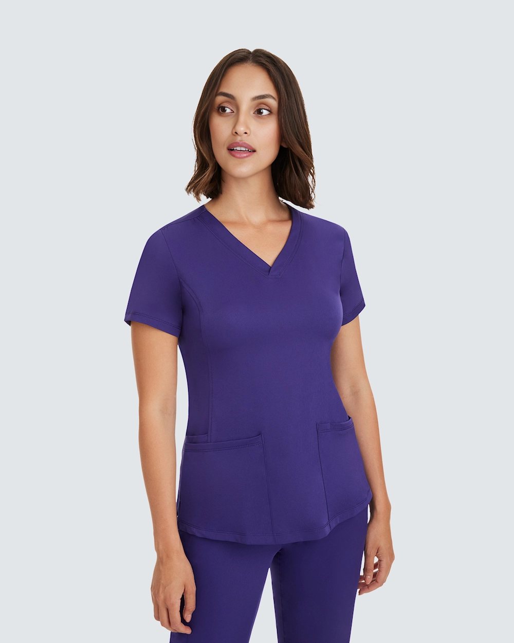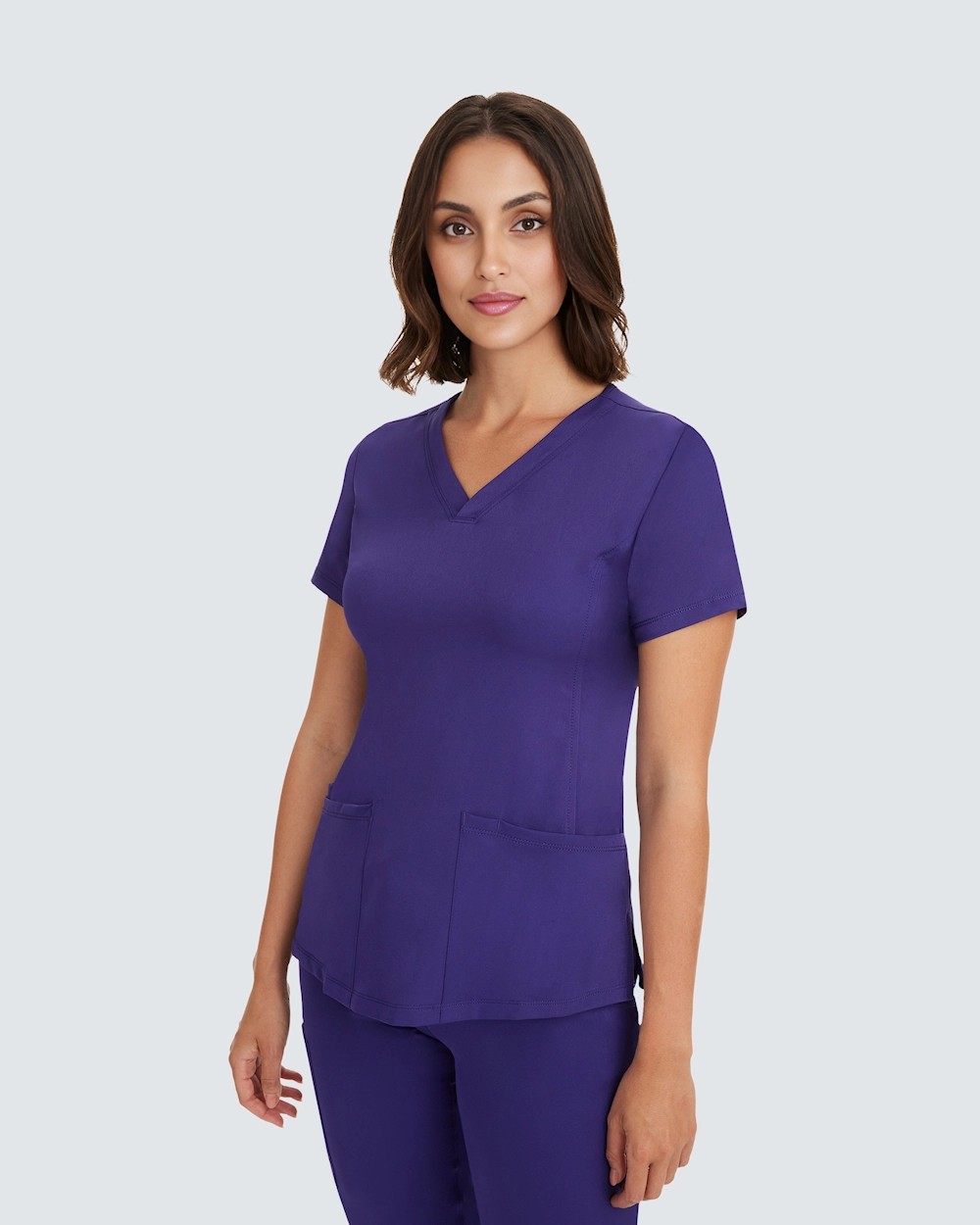 Monica-toppen fra Healing Hands er designet med fokus på både stil og funktion, og for at give dig en behagelig komfort hele arbejdsdagen. Denne V-udskårne top har en moderne pasform og en prinsessesøm foran, der skaber en flatterende og professionel silhuet.