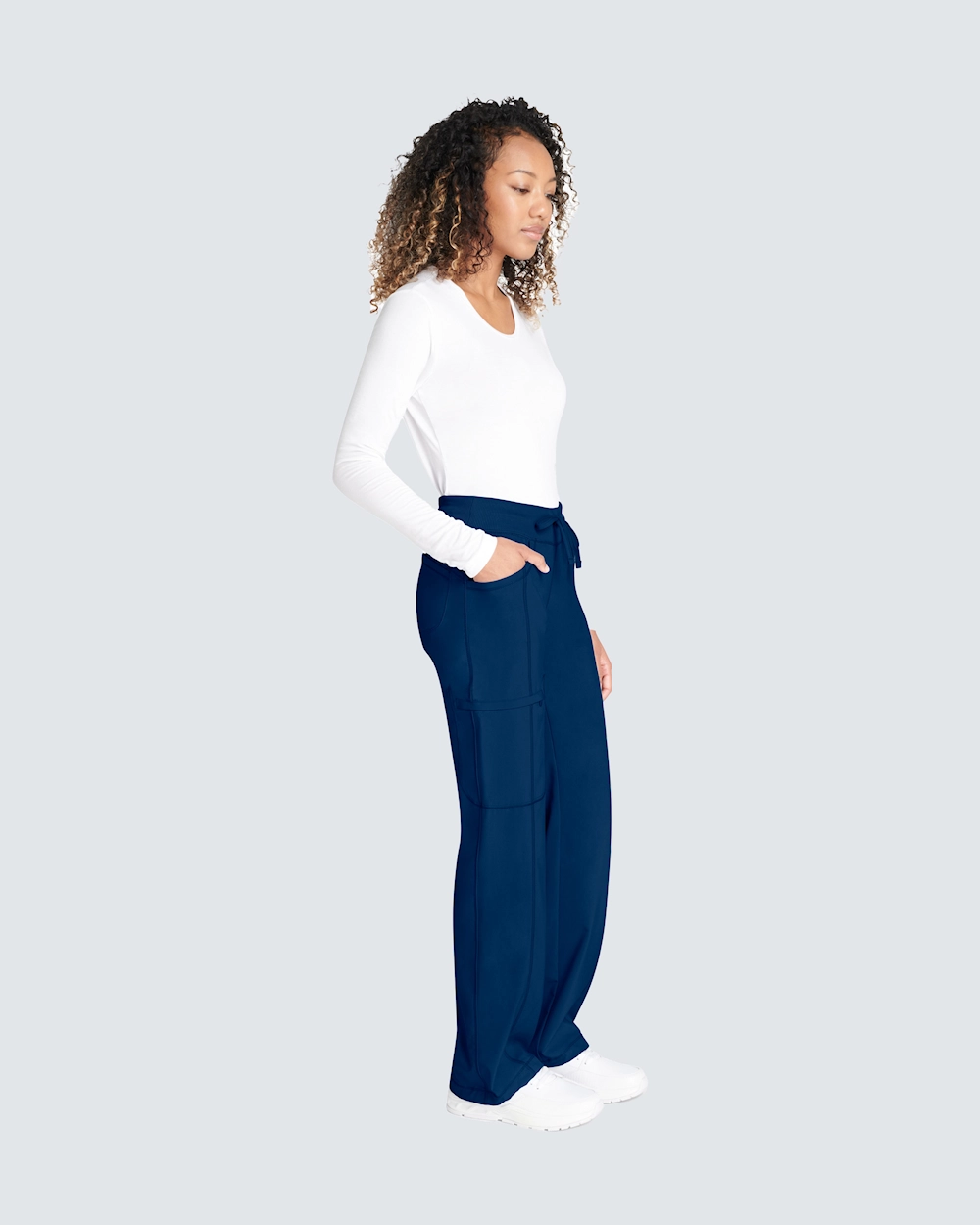 Infinity arbejdsbukser med lige ben og linning i rib tilbyder optimal komfort for personale inden for sundhed med sit unikke design. Den lave, ribstrikkede linning har en justerbar inderside, som sikrer en fleksibel pasform. Skulderindsatsen af ribstrik giver ekstra bevægelsesfrihed, mens stretch-materialet i fire retninger er svedtransporterende og holder dig sval og behagelig.