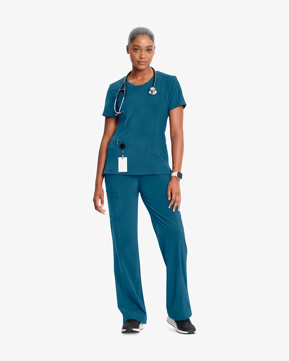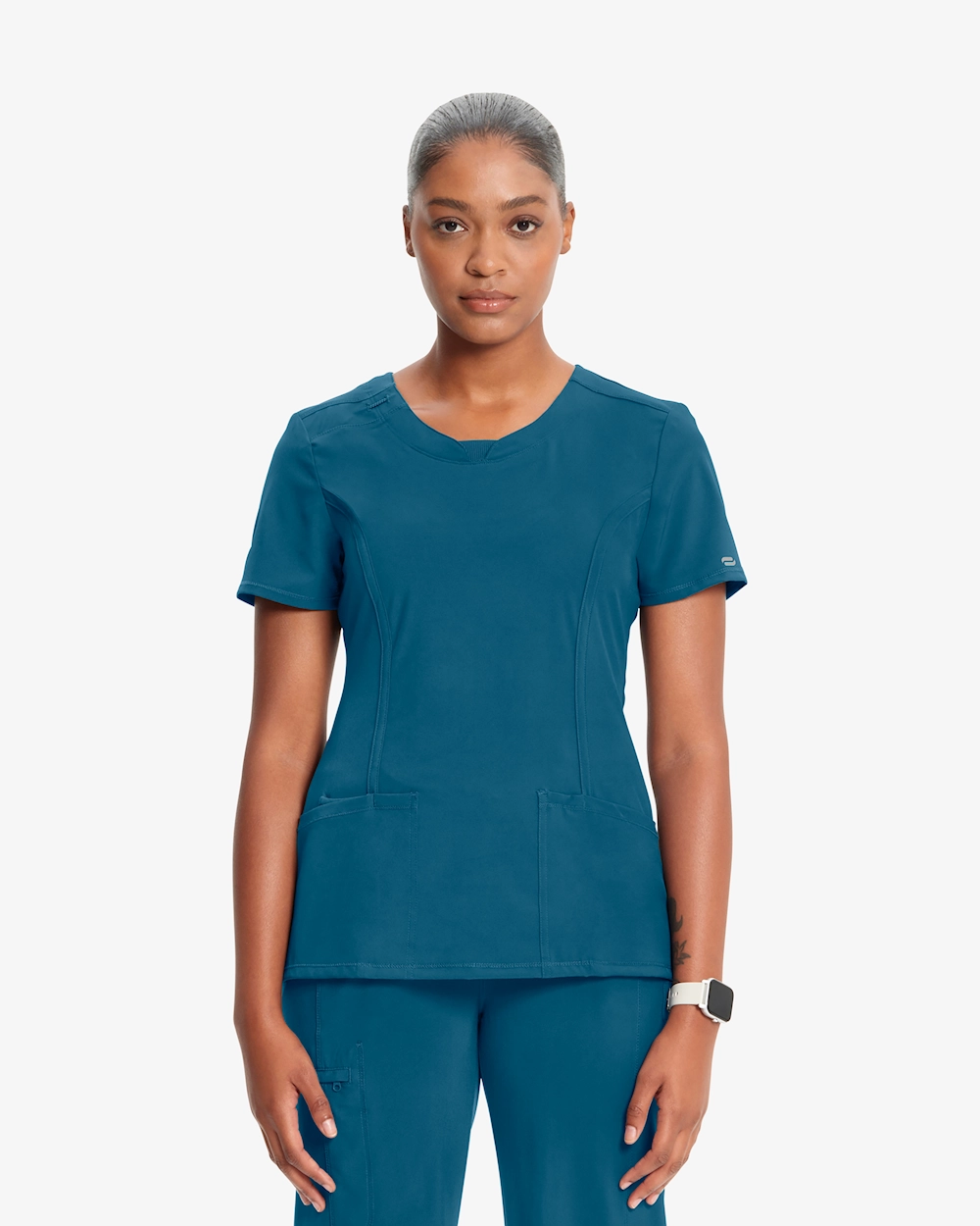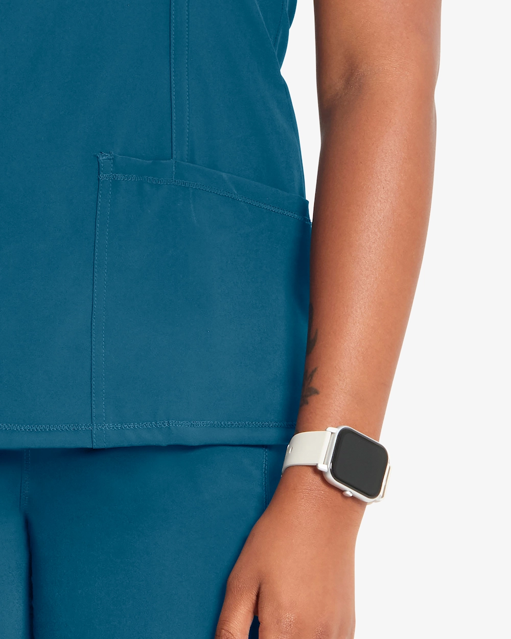 Denne moderne tunika til sundhedspersonale kombinerer funktion og stil med sin moderne pasform, runde hals og stretchpanel bagpå, som giver ekstra bevægelsesfrihed. Detaljer som ID-badge loop, prinsessesømme, praktiske lommer og sideslidser gør tøjet både glat og praktisk. Stretch poplin og superstretch ribstrik giver behagelig 4-vejs stretch, mens PROTX2 teknologi bekæmper fugt og lugt under intense arbejdsdage.