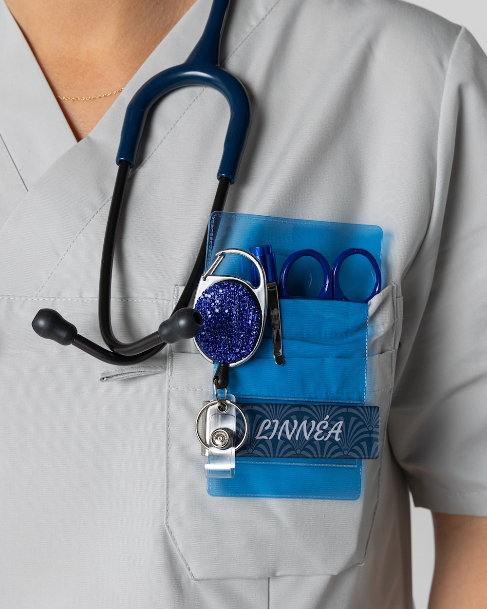 Strømlin din arbejdsdag med en stilfuld kortholder i yoyo-stil. Hold nøgler og ID-kort tæt på og organiseret med en 74 cm lang udtrækkelig ledning for nem adgang. Perfekt til travle miljøer, hvor hurtig adgang er afgørende. De moderne designdetaljer giver en personlig stil, som er ideel til sundhedspersonale, der værdsætter funktion og æstetik.