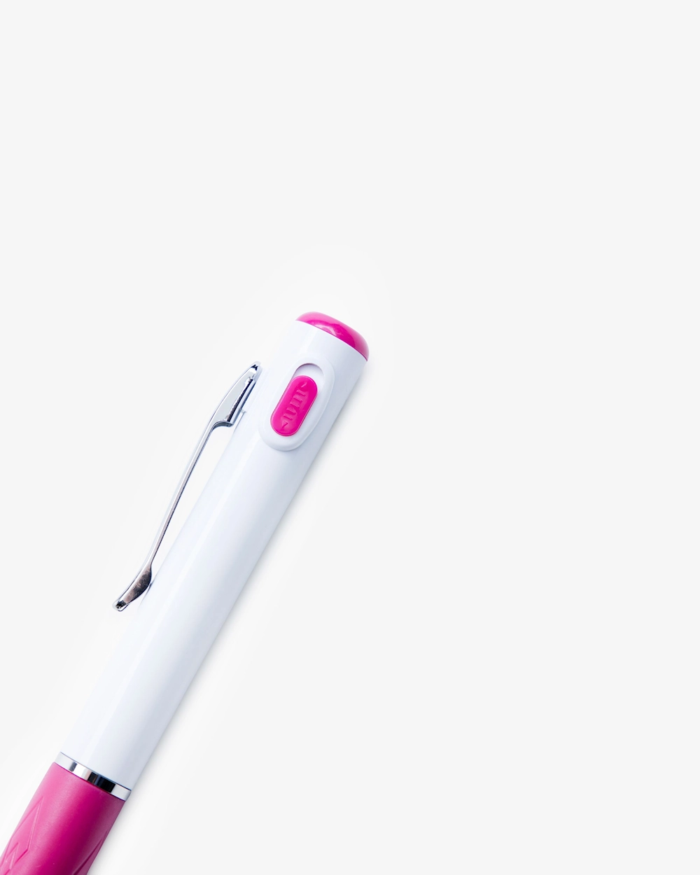 Smart multifunktionskuglepen med blækpen på den ene side og lampe på den anden side. Perfekt til nattevagter eller når du skal finde vej i mørke medicinskabe.