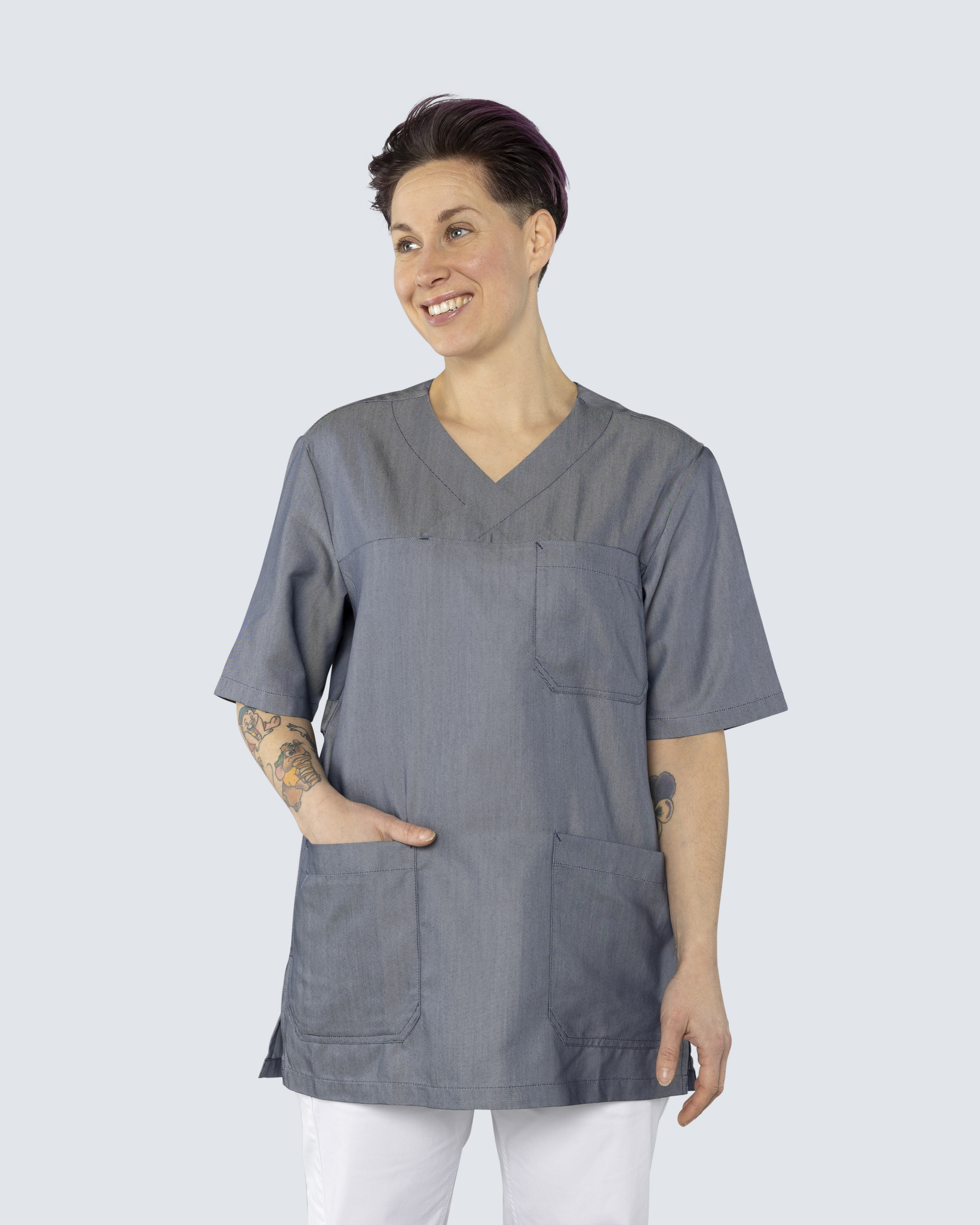 Nybo unisex-busseronne Comfort tilbyder både funktion og komfort til sundhedspersonale, der sætter pris på personligt udtryk på arbejdet. Den justerbare ryg og slidserne i siderne giver fremragende bevægelsesfrihed.