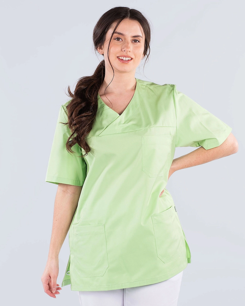 Kollektionen Charisma indeholder farverigt arbejdstøj med praktiske detaljer såsom rummelige lommer, elastik og fleksible trykknapper. Tøjet er fremstillet af 50% bomuld og 50% polyester og kan vaskes ved 75°C.