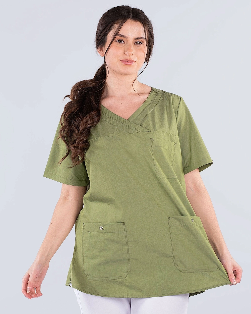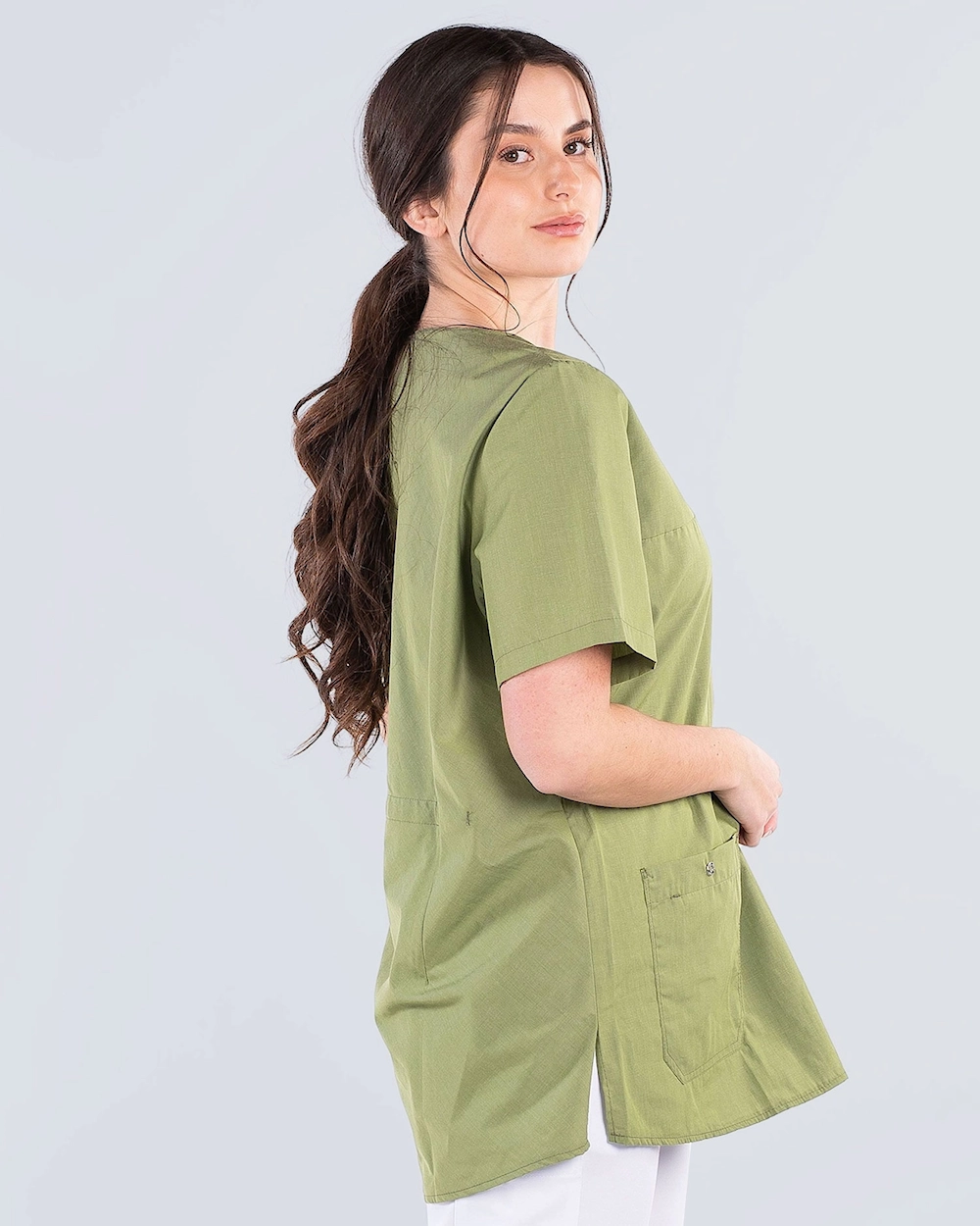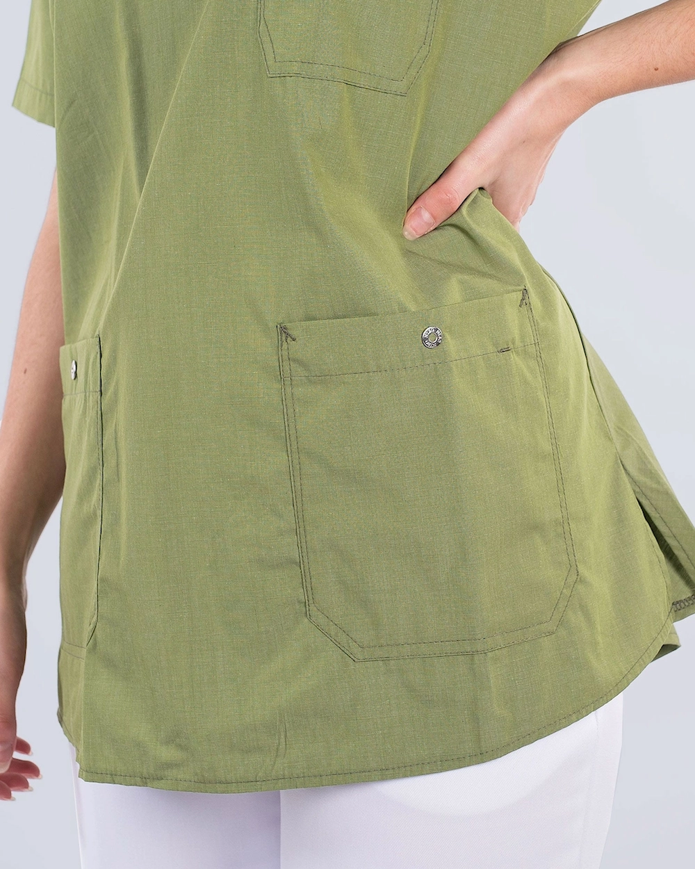 Denne arbejdstunika har et klassisk look med v-hals og er let skræddersyet. Tunikaen har flere fleksible opbevaringsfunktioner: brystlomme, to forlommer og detaljer som mobiltelefonlomme, nøglebånd og kuglepensholder i brystlommen. Med økologisk bomuld og genbrugspolyester får du en behagelig tunika, der fungerer godt både sommer og vinter. Tunikaen har stretch bagpå for optimal pasform og behagelig komfort.