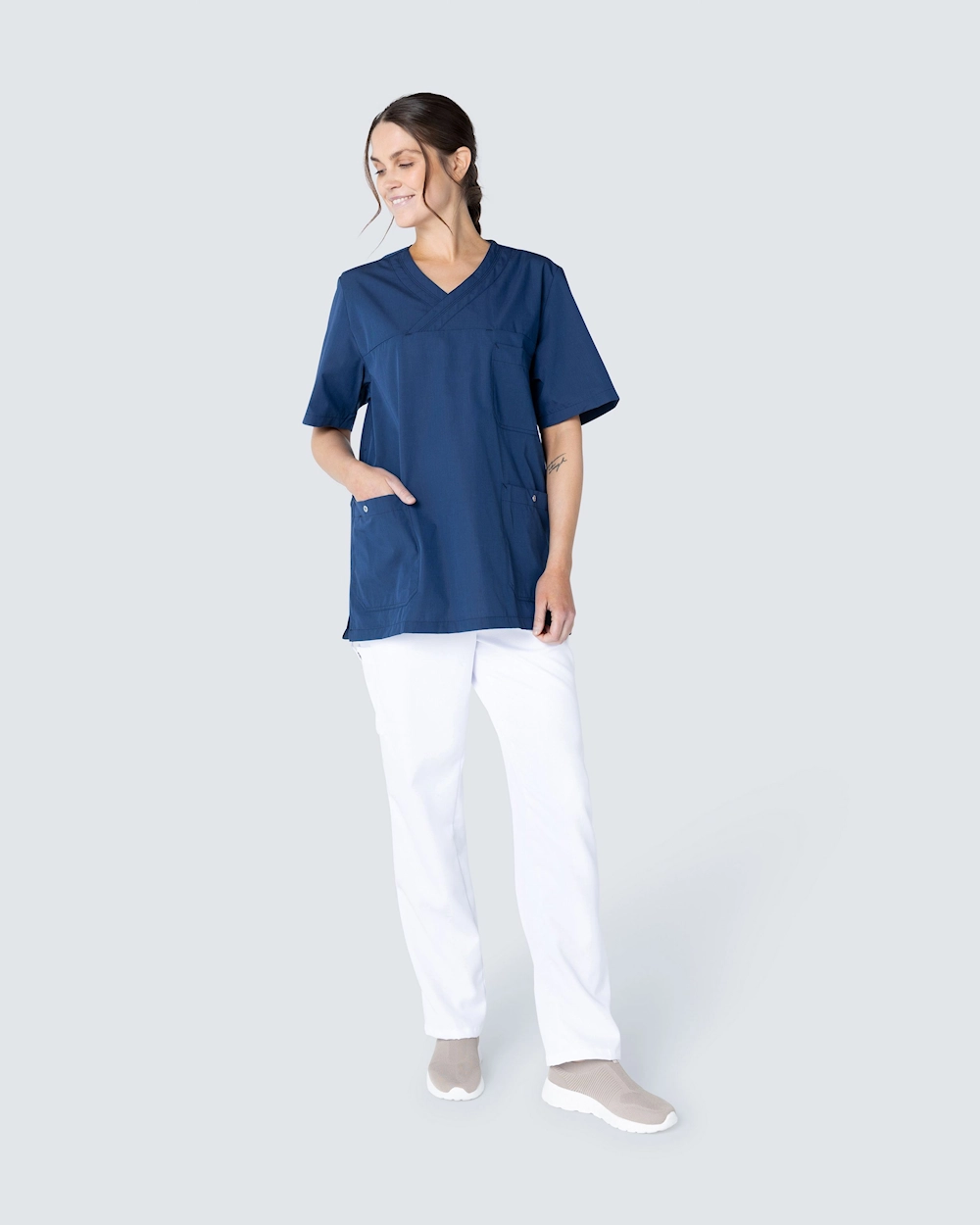 - Justerbar pasform bagpå med elastikbånd og knap