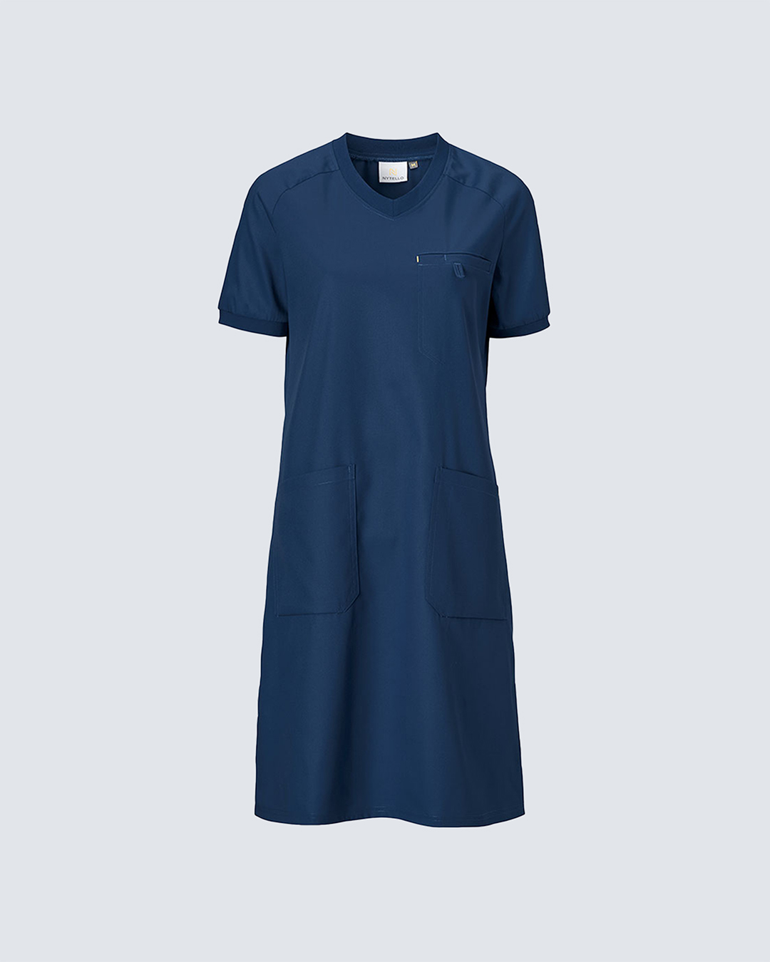 Nytello kjolen med v-hals kombinerer stil og funktionalitet for sundhedspersonale.