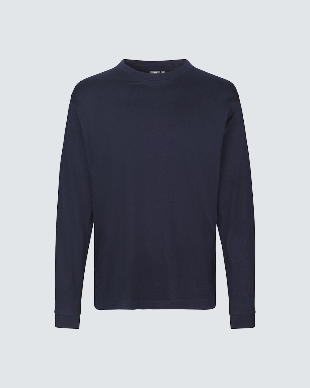 Den ekstra slidstærke langærmede t-shirt forener kvalitet med funktion. Med ribstrikket krave i fire lag samt nakke- og skulderbånd. T-shirten har været igennem en forkrympning ved meget høje temperaturer for ekstra stabilitet og langvarig brug.