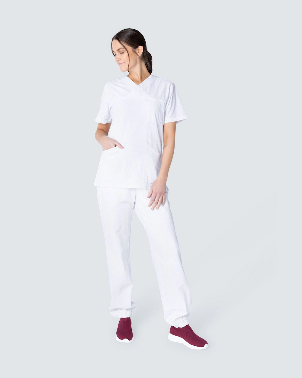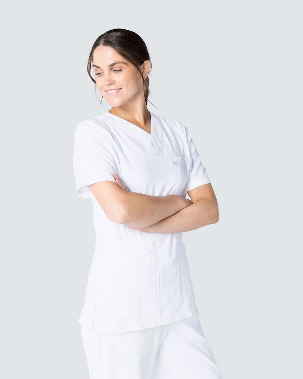 Tøjet i denne kollektion er lavet af 100% krøllet bomuld, hvilket giver en behagelig følelse. Strukturen hjælper med at mindske behovet for pleje, såsom strygning. Nogle beklædningsgenstande i kollektionen er certificeret i henhold til GOTS, hvilket betyder, at bomulden i disse er 100% økologisk. Tøjet kan vaskes ved 60°C og 85°C, se vejledning på tøjet for den korrekte vaskeanvisning.