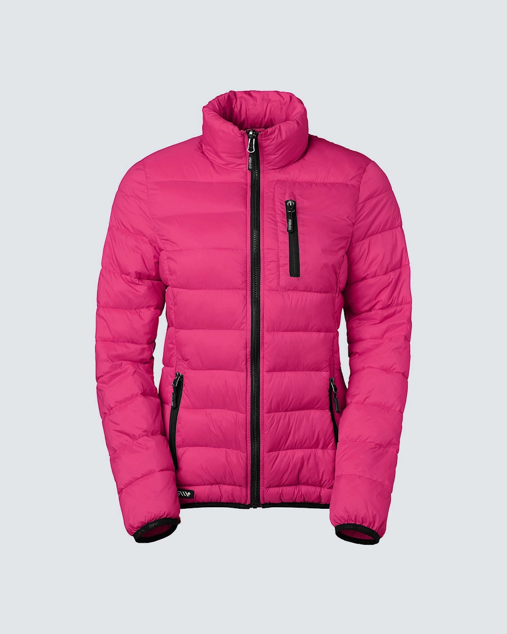 Moderne letvægtsjakke med immiteret dun og tætsiddende pasform. Jakkens smalle kanaler holder dunet på plads. Jakken leveres med sorte zip-pullers. Der medfølger en pose med ekstra lynlås-skydere i samme farve som jakken.