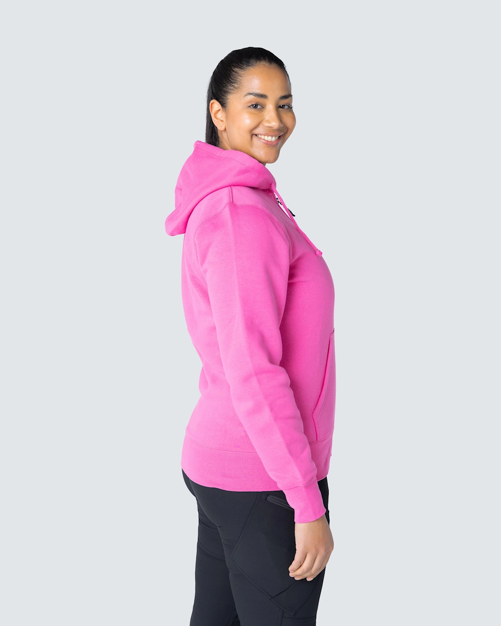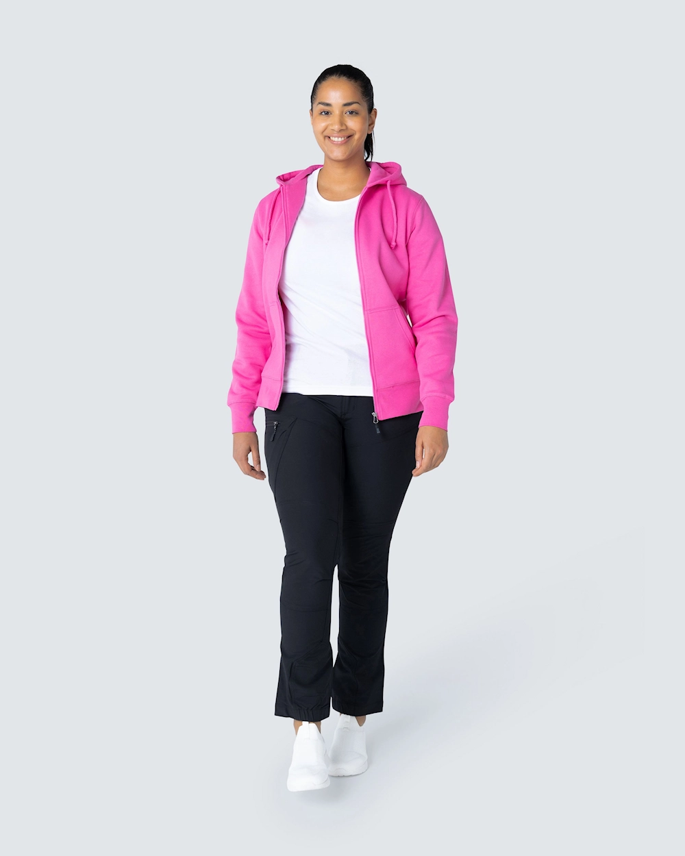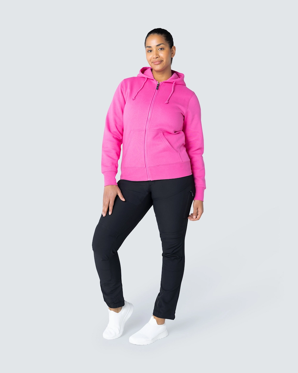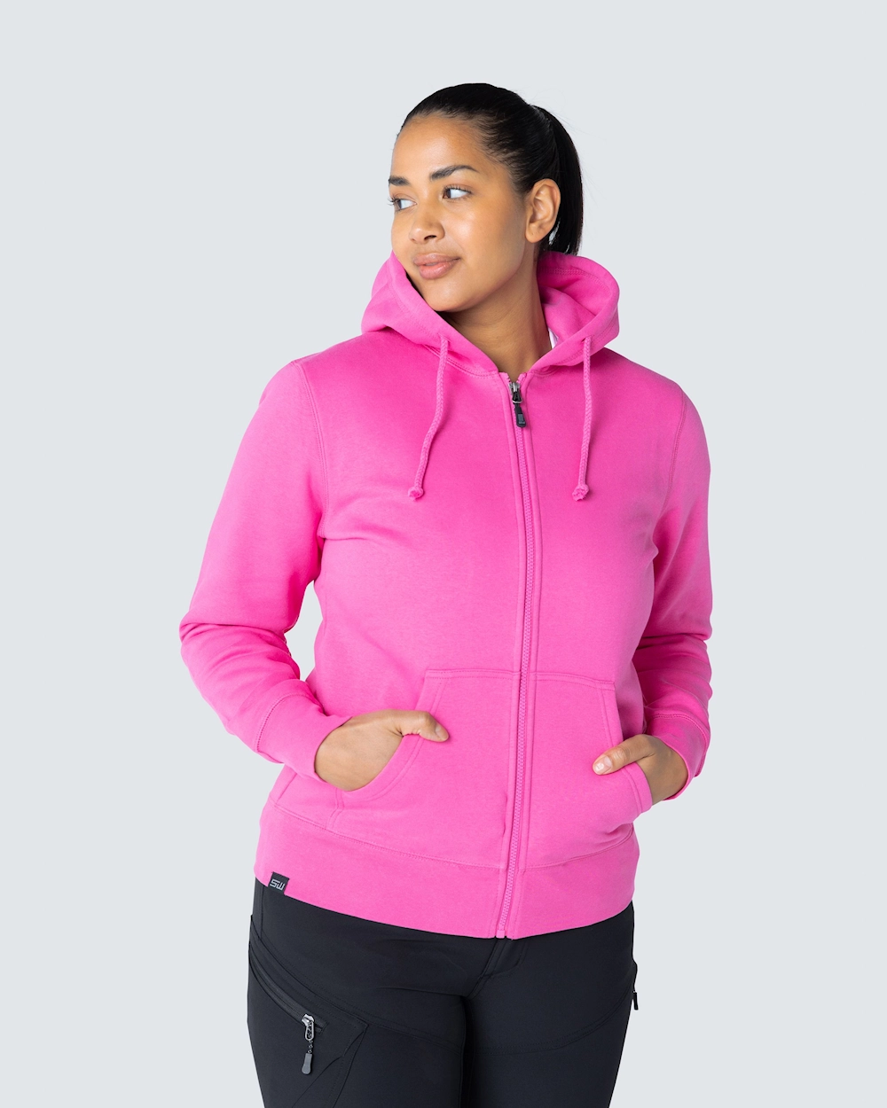 Collegejakke med en fin kvinde pasform. Dobbelt stoflag i hætten og to lommer foran. Elastisk manchet i bunden og ved manchetterne.