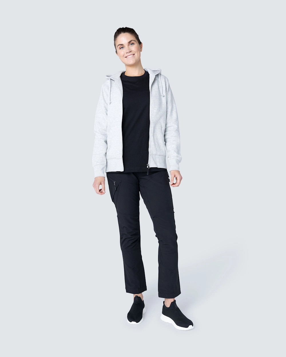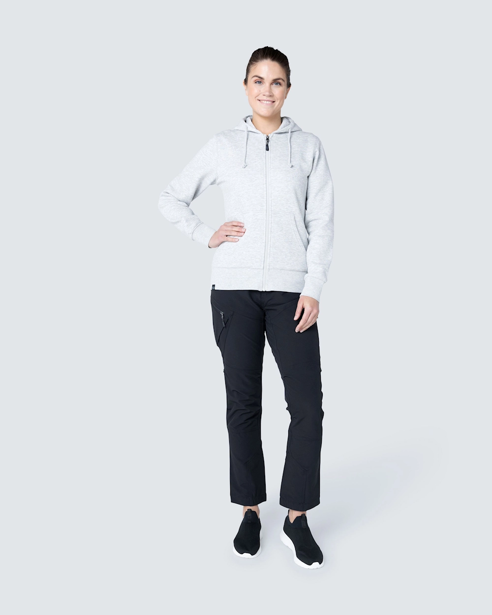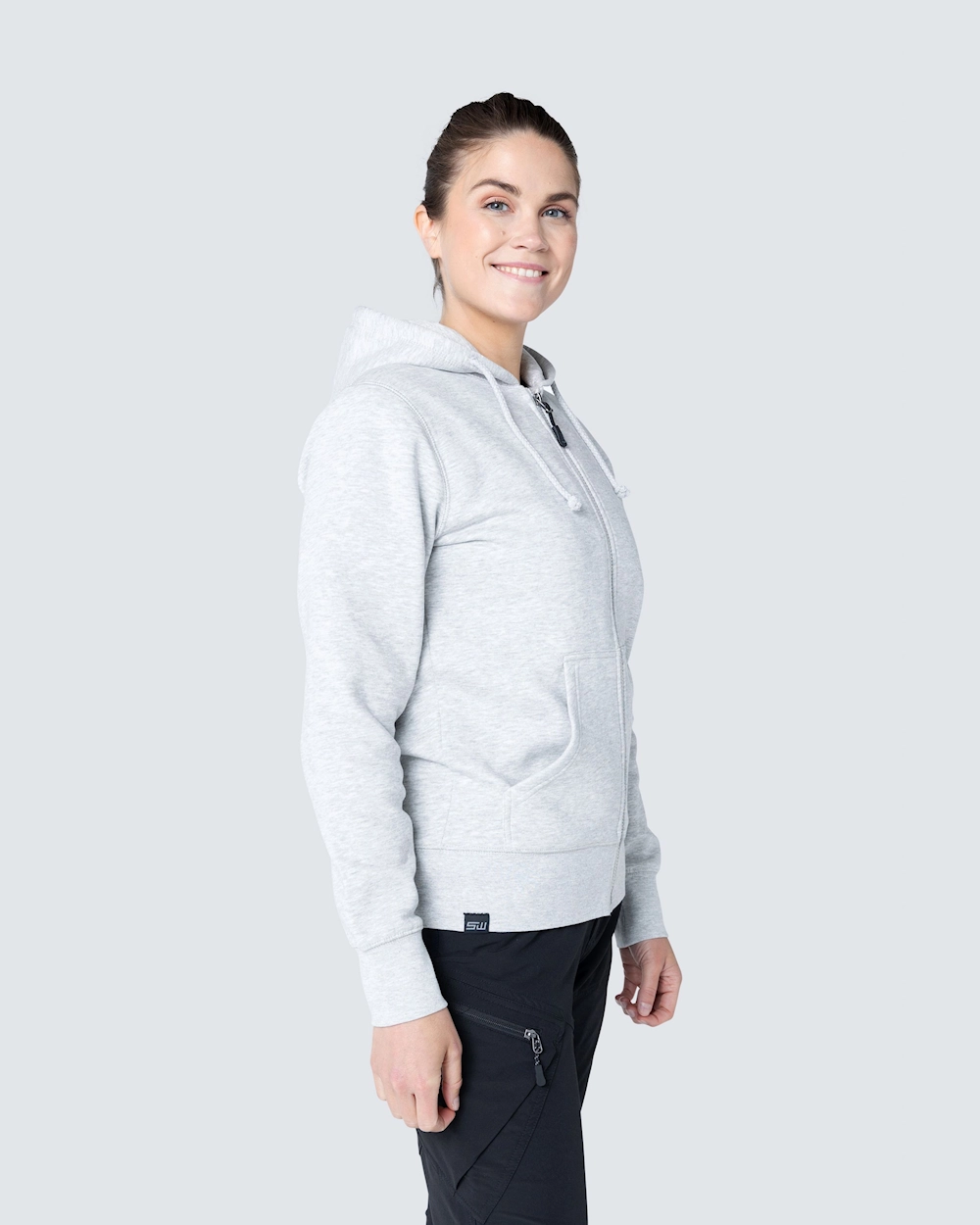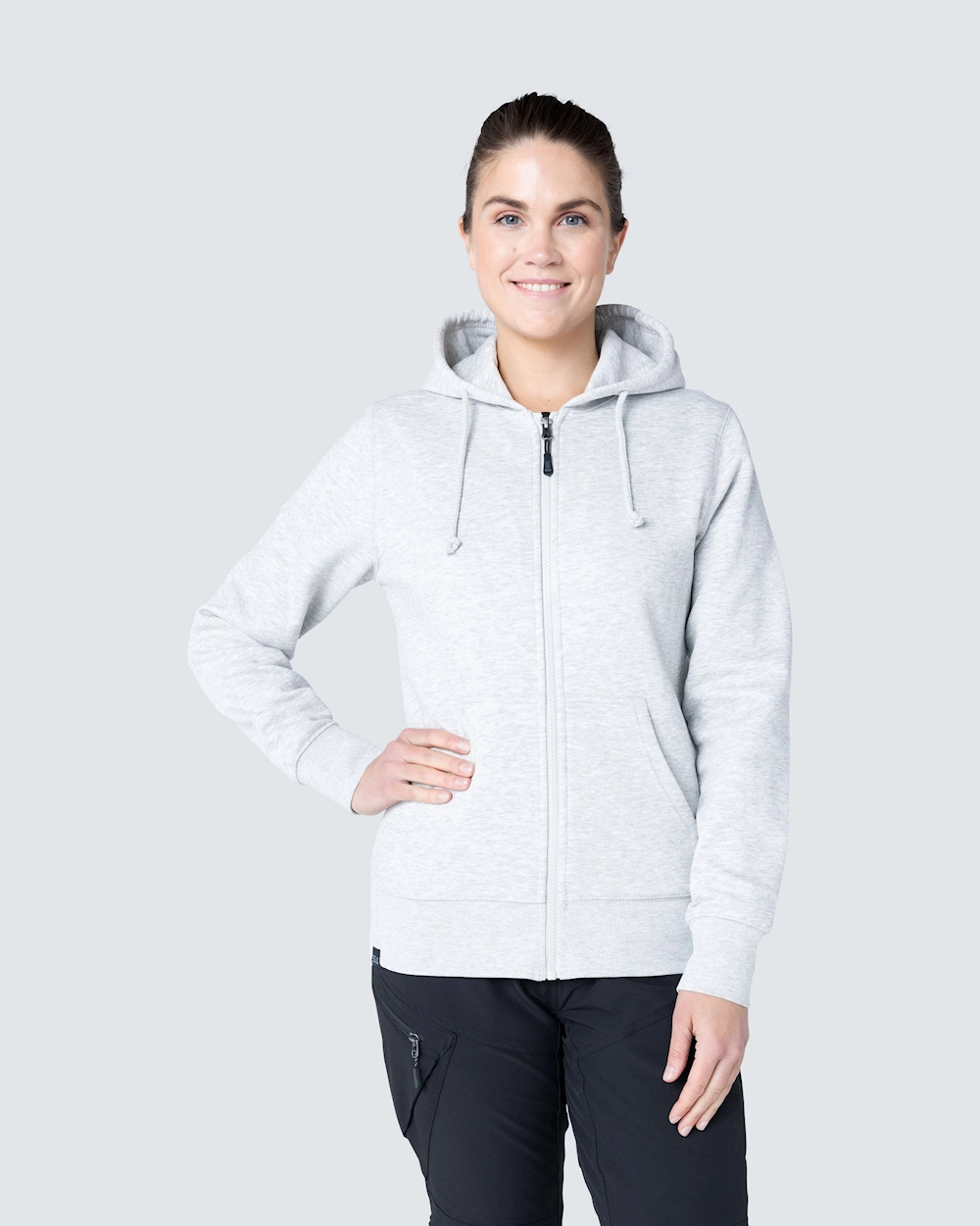 Collegejakke med en fin kvinde pasform. Dobbelt stoflag i hætten og to lommer foran. Elastisk manchet i bunden og ved manchetterne.
