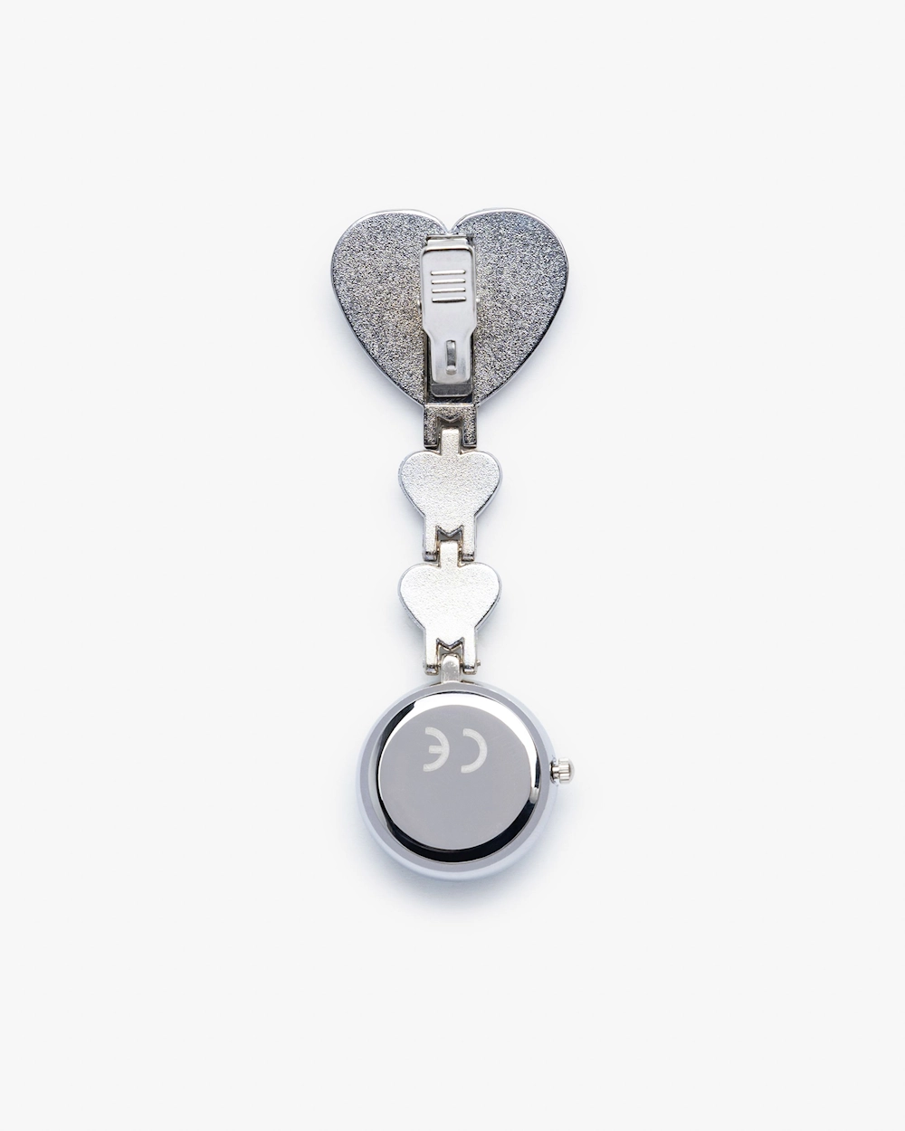 Dette stilfulde sygeplejerskeur hjælper dig med nemt at holde styr på tiden, tælle sekunder og holde styr på tiden under pleje og behandlinger. Uret har et flot led i rustfrit stål med tre hjerter; et større hjerte og to mindre og kan let rengøres med sprit. Du kan nemt fastgøre sygeplejeuret til din tunika eller busseronne med en klemme, som er perfekt til dig, der arbejder i sundhedsvæsenet og ikke må bære armbåndsure på arbejde. Match din sygeplejerskes ur med andet farverigt tilbehør, f.eks. Kuglepenslomme, et personligt navneskilt eller farverige støttestrømper, og sæt et personligt præg til dit arbejdstøj.